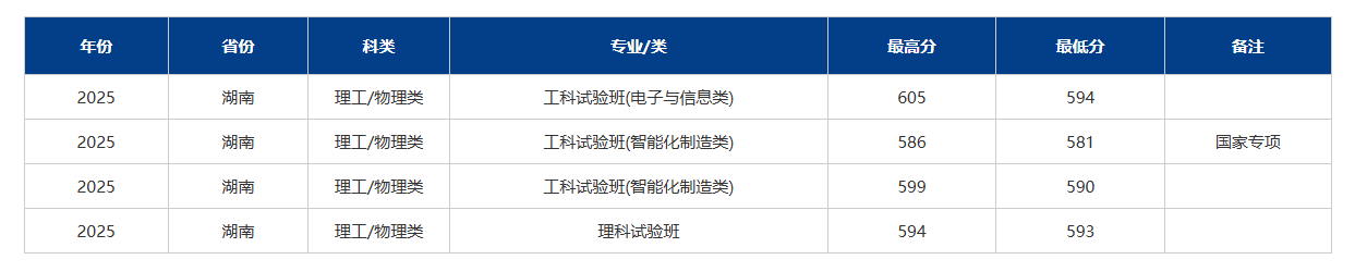 但实力再强,登科要看分数。按照近两年湖南工科试验班登科环境:2025年最低分为594分,2024年最低分为587分(位次19611位)。目前的580分,比往年最低线低了了一些。风险比力高;但更环节的是位次,而不是分数,每年分数线浮动很大,看位次才是焦点。若本年的位次取上理过往登科位次差距不大,那“卡线进”的概率是存正在的;若位次较着偏后,就容易滑档。也能够考虑同属工科类、但登科相对敌对的标的目的,如国度专项打算中的工科试验班(智能化制制类),专业包罗。