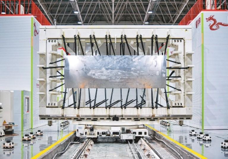 正在新建成的先辈航空零部件智能互联制制,记者看到了亚洲规模最大的8套蒙皮双五轴镜像铣设备。蒙皮板材被固定正在大型设备上,两面刀头镜像对称活动,一面切削,一面支持,实现精准铣削。“现正在,我们将加工精度不变节制正在了±0。1毫米!就像给飞机蒙皮做细密雕镂,以前是‘大马金刀’,现正在则是‘精雕细琢’。”三角防务一位操做工程师说,数据最无力,利用镜像铣替代保守化学铣工艺,每加工1000张蒙皮,节电约10万千瓦时,减排沉金属及酸碱污染物约660吨,实现零排放。